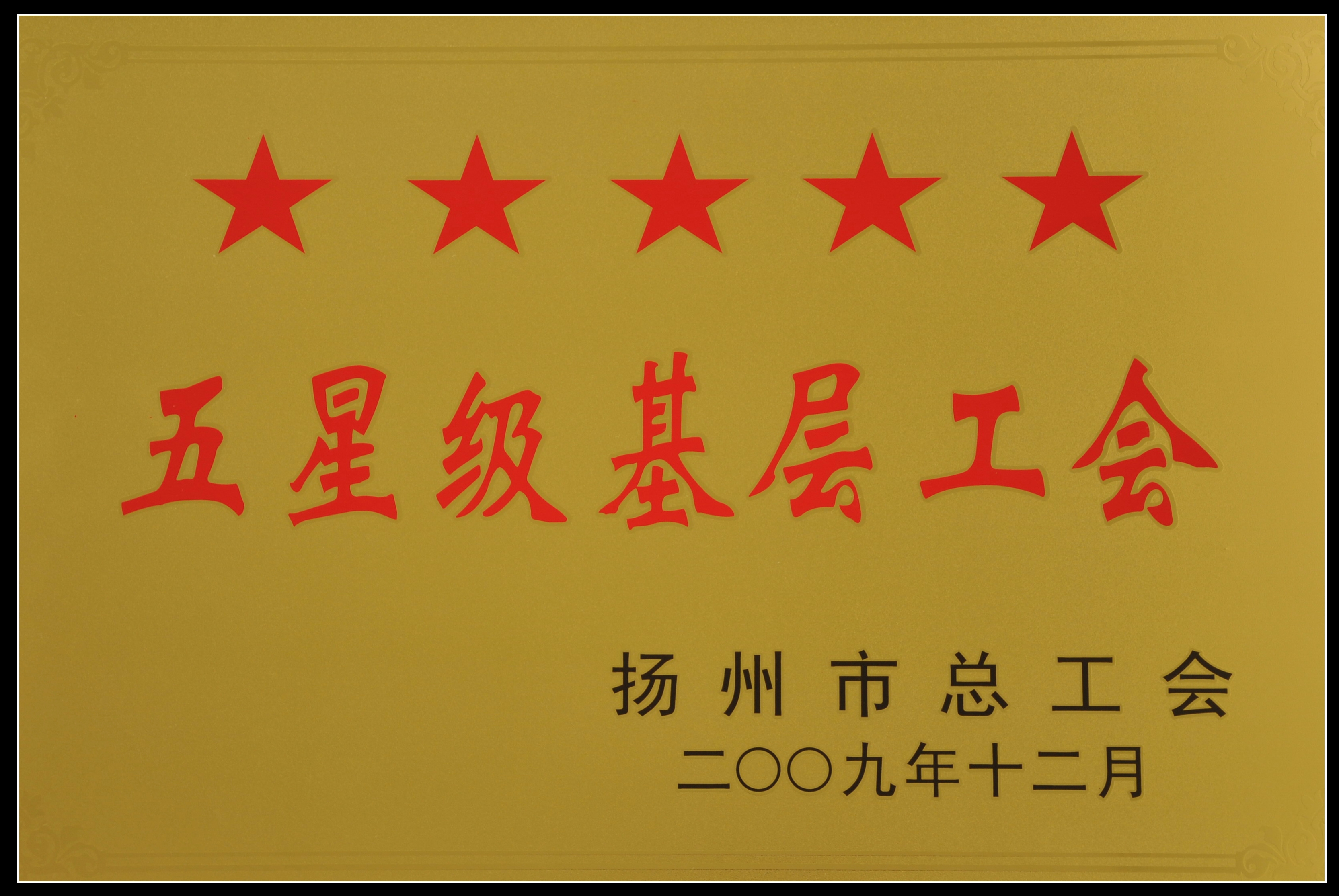 > 集團公司工會被揚州市總工會評為五星級基層工會