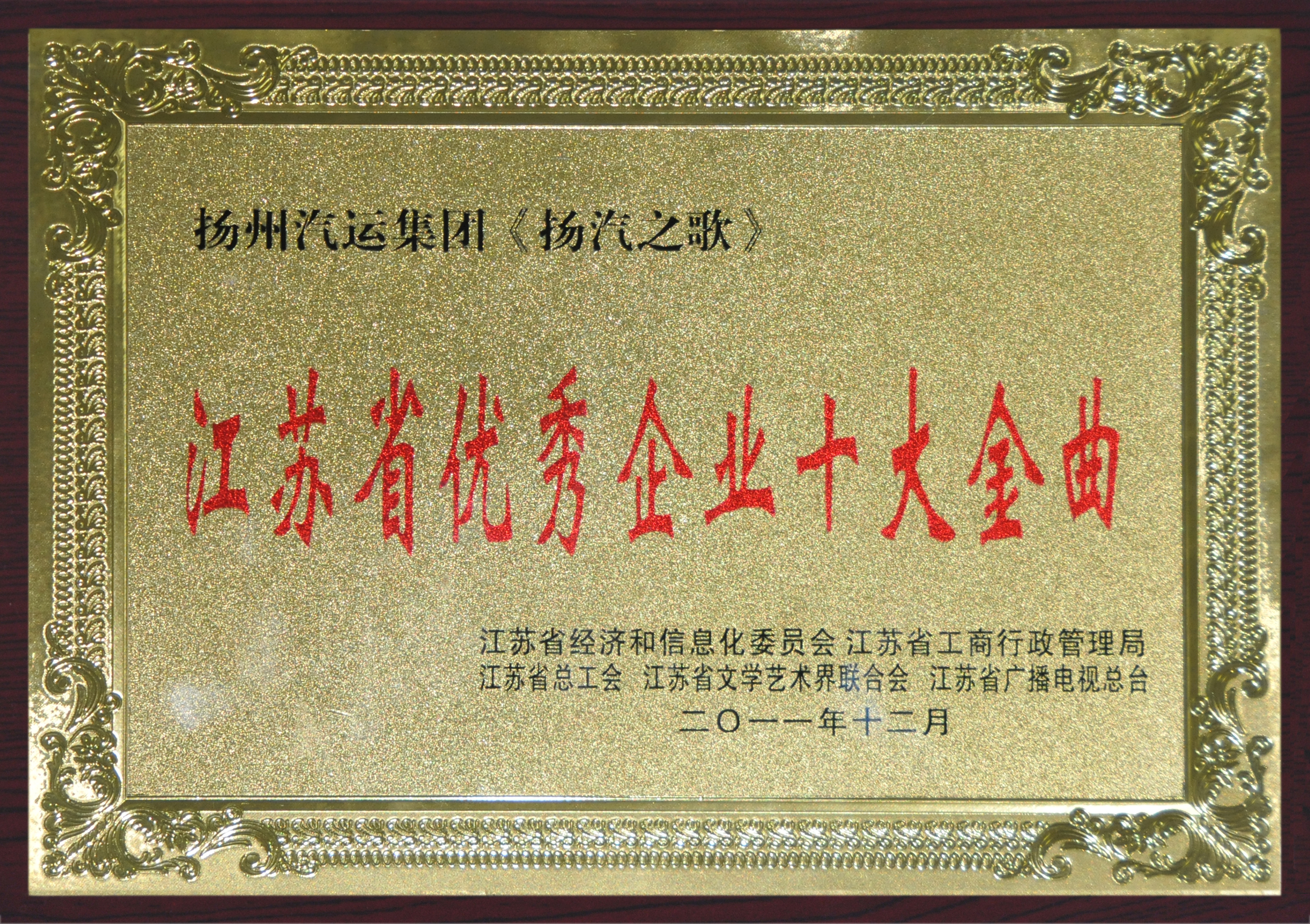 公司喜獲2011年省優(yōu)秀企業(yè)十大金曲