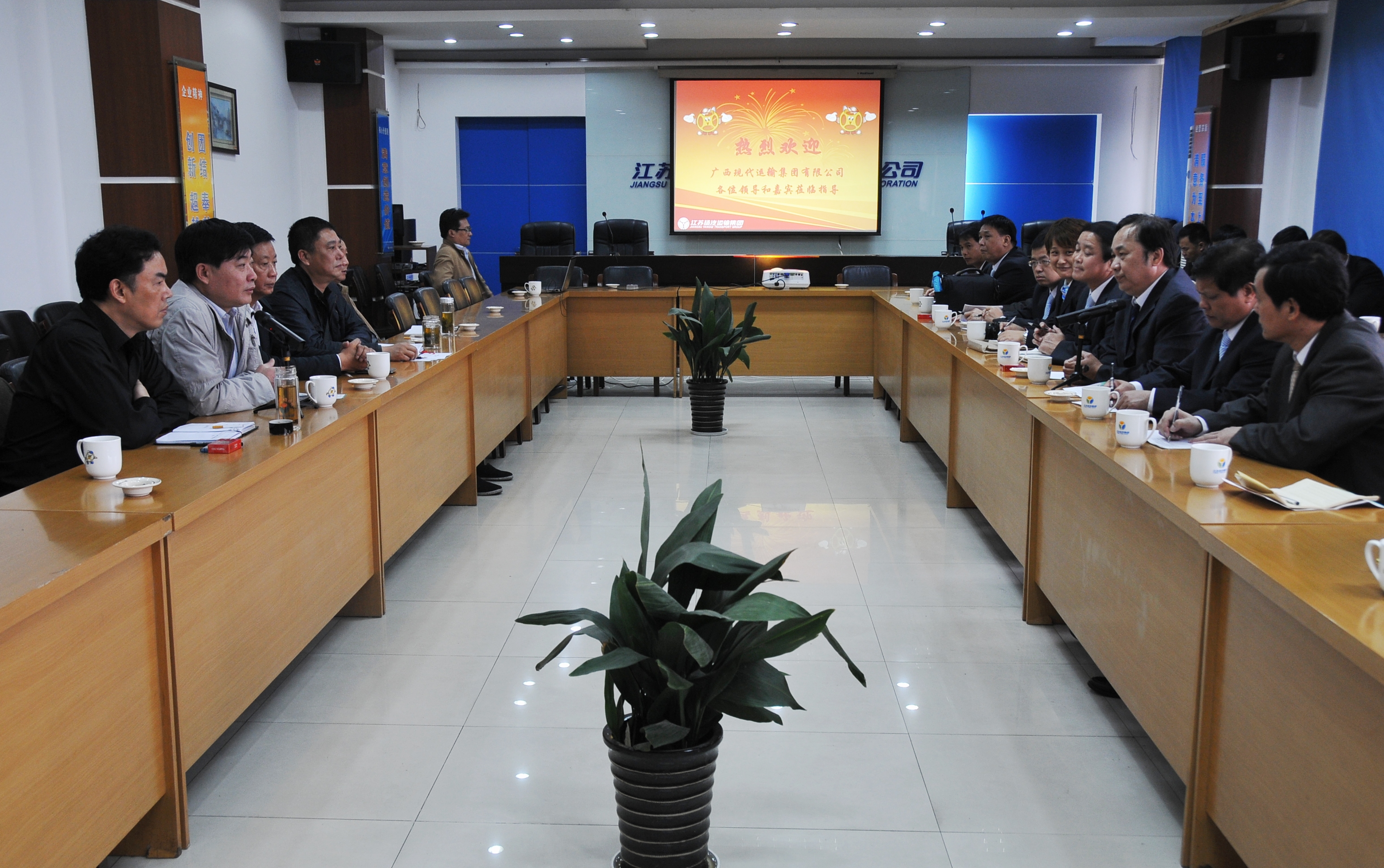 5月8日上午,廣西現(xiàn)代運(yùn)輸集團(tuán)赴揚(yáng)考察團(tuán)一行35人,在集團(tuán)副總裁、黨委副書記滕寧率領(lǐng)下,來我司交流學(xué)習(xí)。