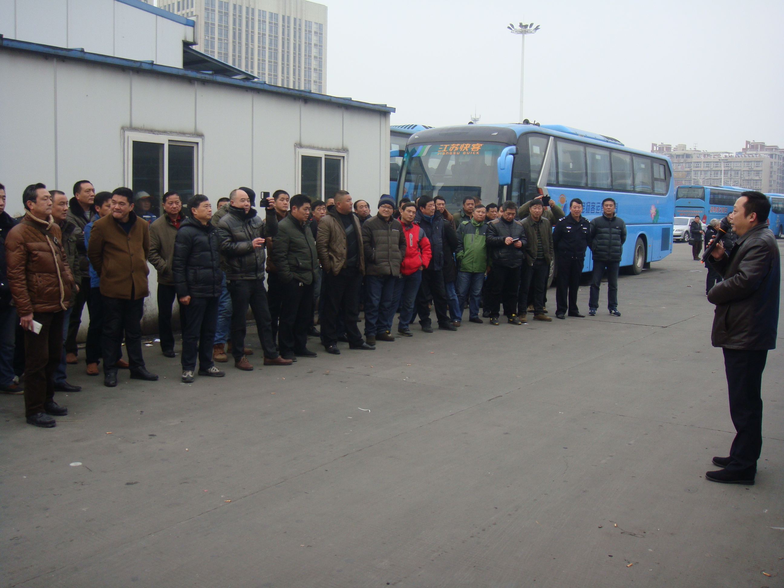 2月3日,春運(yùn)前夕,集團(tuán)公司聯(lián)合市運(yùn)管處在揚(yáng)州汽車(chē)西站舉辦惡劣天氣應(yīng)急預(yù)案演練活動(dòng)?偨(jīng)理助理萬(wàn)雷,安全機(jī)務(wù)處人員以及來(lái)自全司各客運(yùn)單位安全經(jīng)理、安全員、機(jī)務(wù)員、駕駛員代表計(jì)70余人參加了活動(dòng)。副總經(jīng)理談衛(wèi)國(guó)指揮演練,市運(yùn)管處書(shū)記徐才祥、市交通產(chǎn)業(yè)集團(tuán)副總經(jīng)理王寧生分別對(duì)本次演練進(jìn)行了點(diǎn)評(píng),并對(duì)即將到來(lái)的春運(yùn)安全生產(chǎn)工作作了重要講話(huà)。演練還邀請(qǐng)了市交巡警支隊(duì)一大隊(duì)同志現(xiàn)場(chǎng)觀(guān)摩指導(dǎo)。
