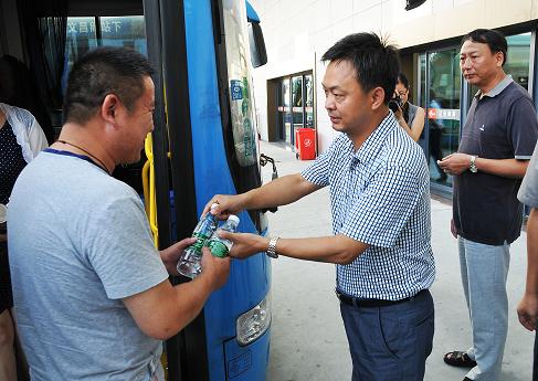 在西部客運(yùn)樞紐停車場(chǎng),凌董事長(zhǎng)與職工們親切交談,詢問他們的工作狀態(tài)和身體狀況,并送上礦泉水和八寶粥。董事長(zhǎng)熱忱表示,企業(yè)發(fā)展離不開一線工作人員的辛勤勞動(dòng),連續(xù)的高溫天氣給道路運(yùn)輸增加了很大壓力,一線職工戰(zhàn)高溫、斗酷暑,非常辛苦,為企業(yè)做出了很大貢獻(xiàn)。他希望廣大職工繼續(xù)發(fā)揚(yáng)艱苦奮斗的精神,確保車輛安全出行和準(zhǔn)點(diǎn)發(fā)車,確保旅客平安往返。