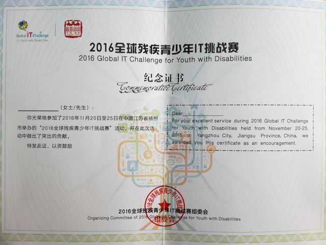 2016全球殘疾青少年IT挑戰(zhàn)賽經(jīng)過4天激烈角逐,于11月24日在揚州圓滿落幕。此次比賽共有來自16個國家的104名選手參賽,相關(guān)的IT論壇及文化活動也同期舉行。揚汽集團(tuán)憑借著過硬的資質(zhì)和良好的口碑,有幸為此次比賽和論壇活動提供了會務(wù)用車服務(wù)。