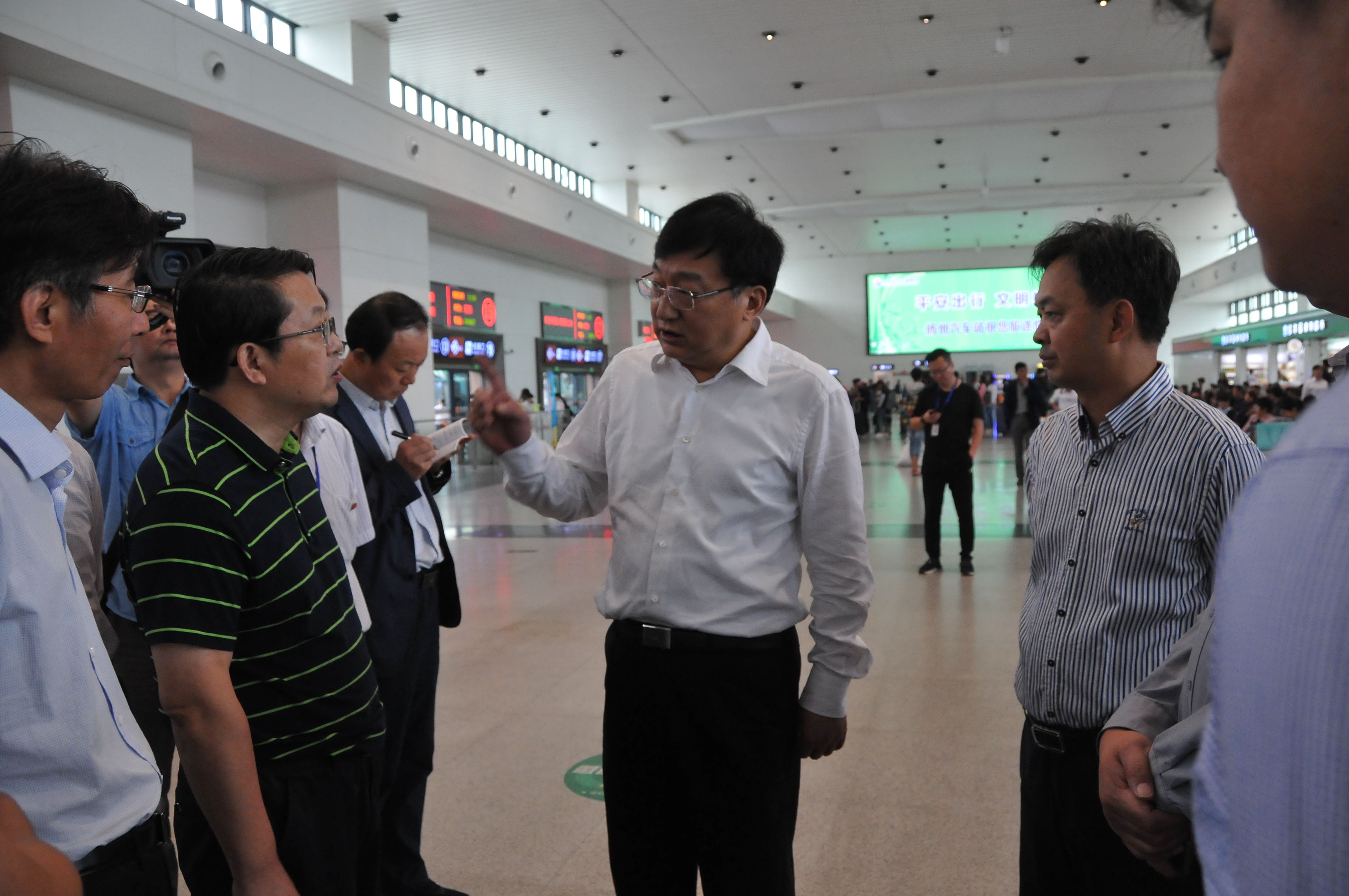 交通產(chǎn)業(yè)集團凌衛(wèi)東董事長向丁市長介紹了車站當天運輸概況,截止上午11時,揚州站已經(jīng)發(fā)送旅客近2萬人,加班近200輛次,預計下午4時左右還會迎來今天的一個小高峰,發(fā)送旅客量有望達到3萬人。揚汽集團韓滿陵書記表示,集團將綜合調(diào)配運力,做到忙而不亂,讓旅客乘興而來滿意而歸,和家人團聚,共度中秋、共慶國慶。