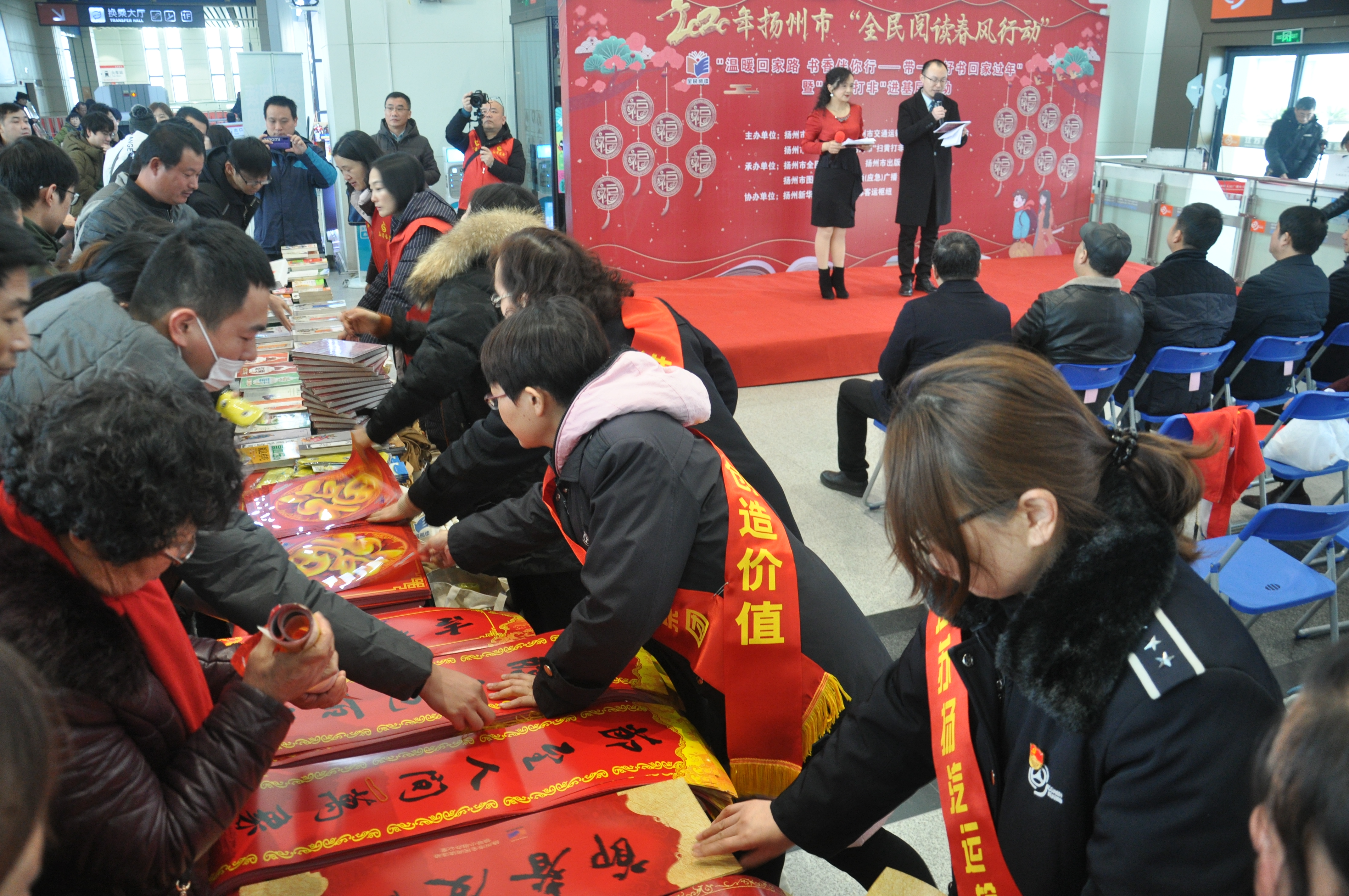 2020年1月14日上午,揚州市“全民閱讀春風(fēng)行動”暨“掃黃打非”進基層活動在揚州汽車站候車大廳隆重舉行。
