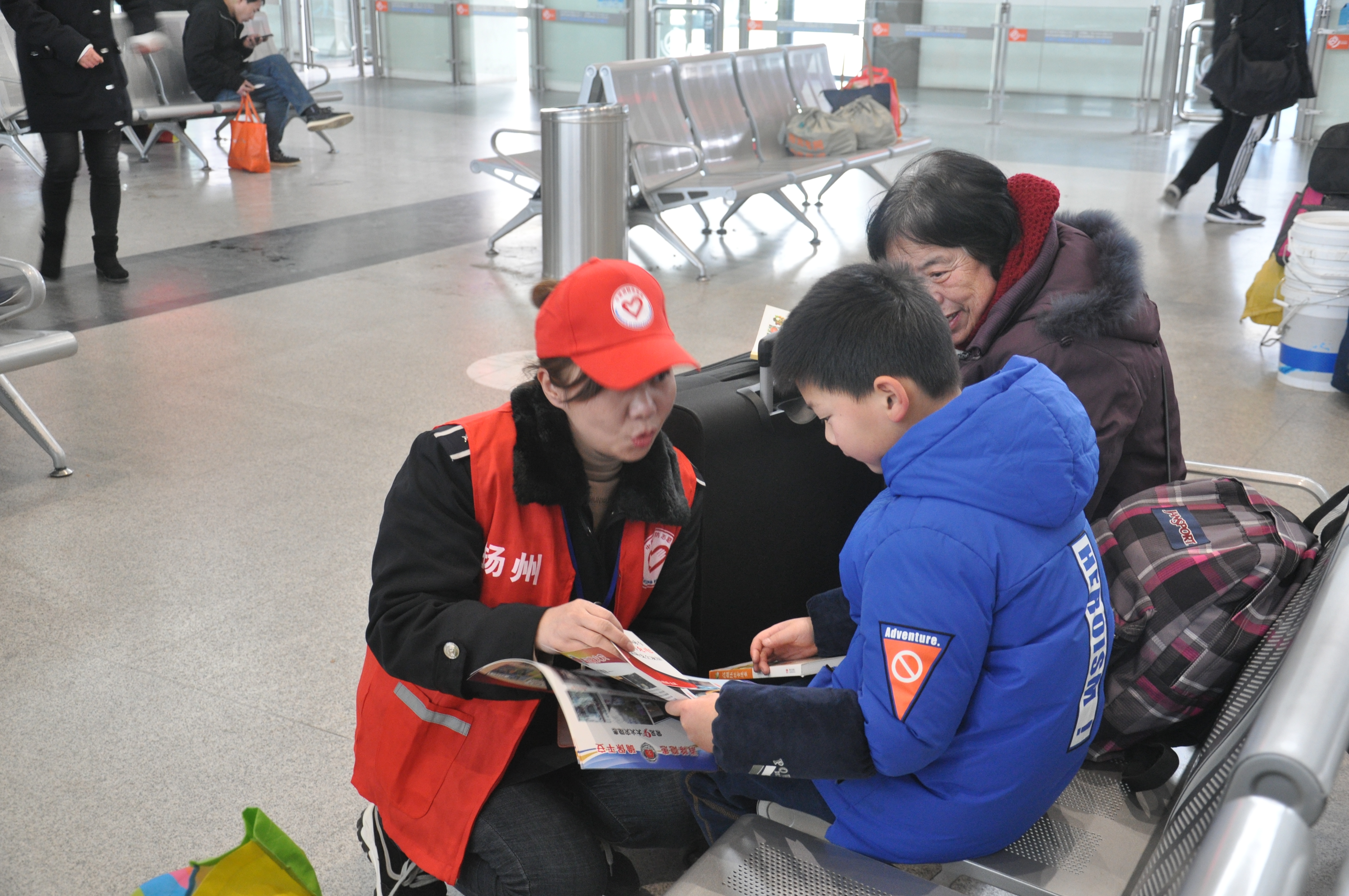 活動現(xiàn)場提供了種類繁多的書籍和春聯(lián),旅客們在宣傳臺前駐足,為孩子、親人或自己精心挑選,氣氛熱烈。活動現(xiàn)場還安排了揚汽集團志愿者向來往旅客進行消防安全知識的宣傳和講解。