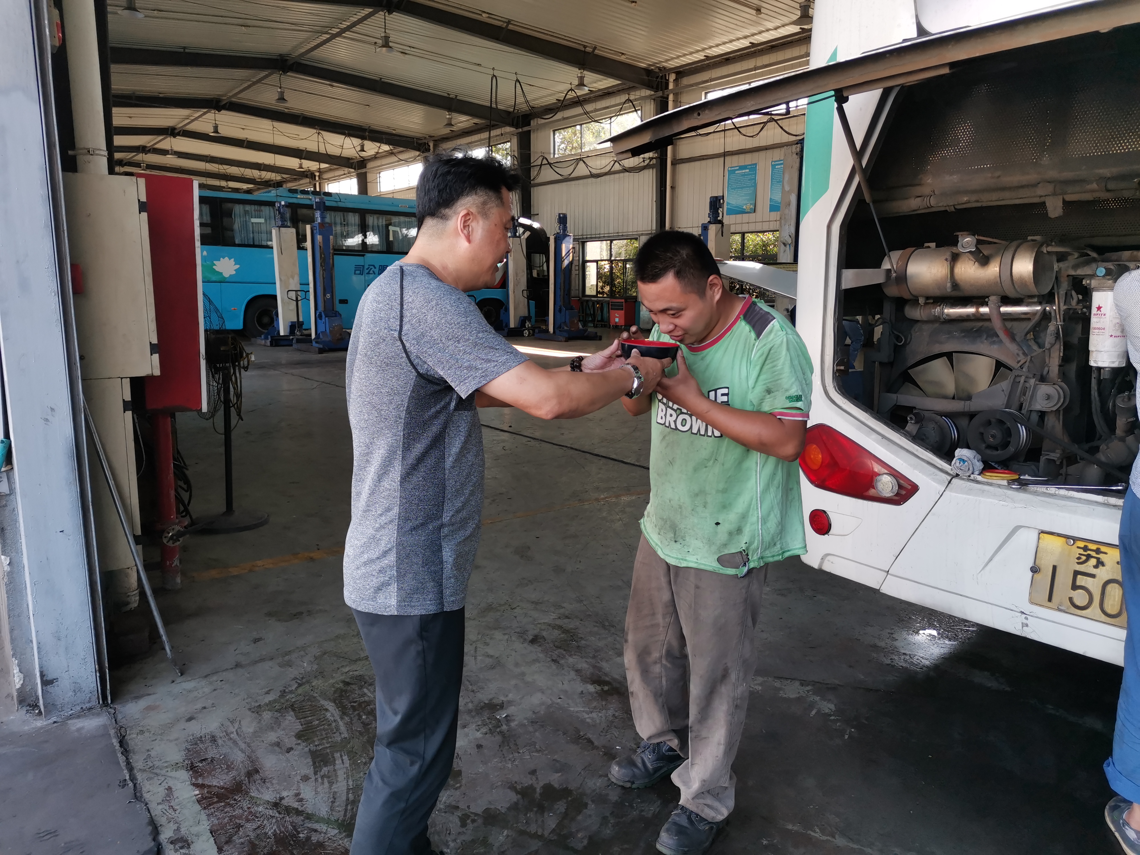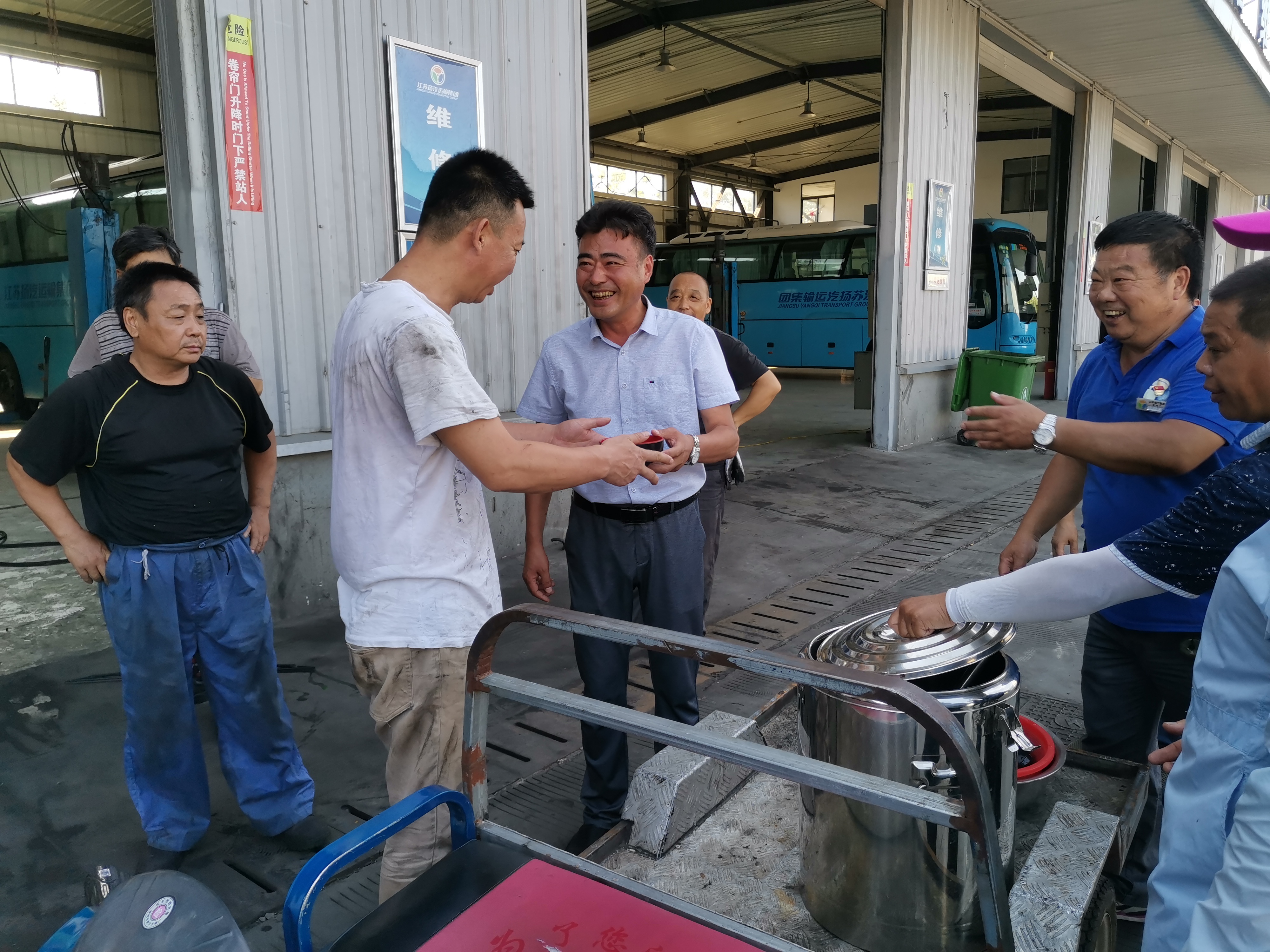 修理廠:針對高溫天氣,修理廠多種防暑措施并進,以發(fā)放藿香正氣水、龍虎人丹、毛巾、肥皂等防暑降溫用品以及全天不限時供應礦泉水,堅持每日發(fā)放冰鎮(zhèn)綠豆湯等方式,避免職工中暑現(xiàn)象發(fā)生,同時還要求班組時刻關注組員身體狀況,著重關注“三高”人群每日服藥情況,保持休息室空調長效制冷,確保職工及時有效防暑避暑,營造高溫下安全生產(chǎn)氛圍。