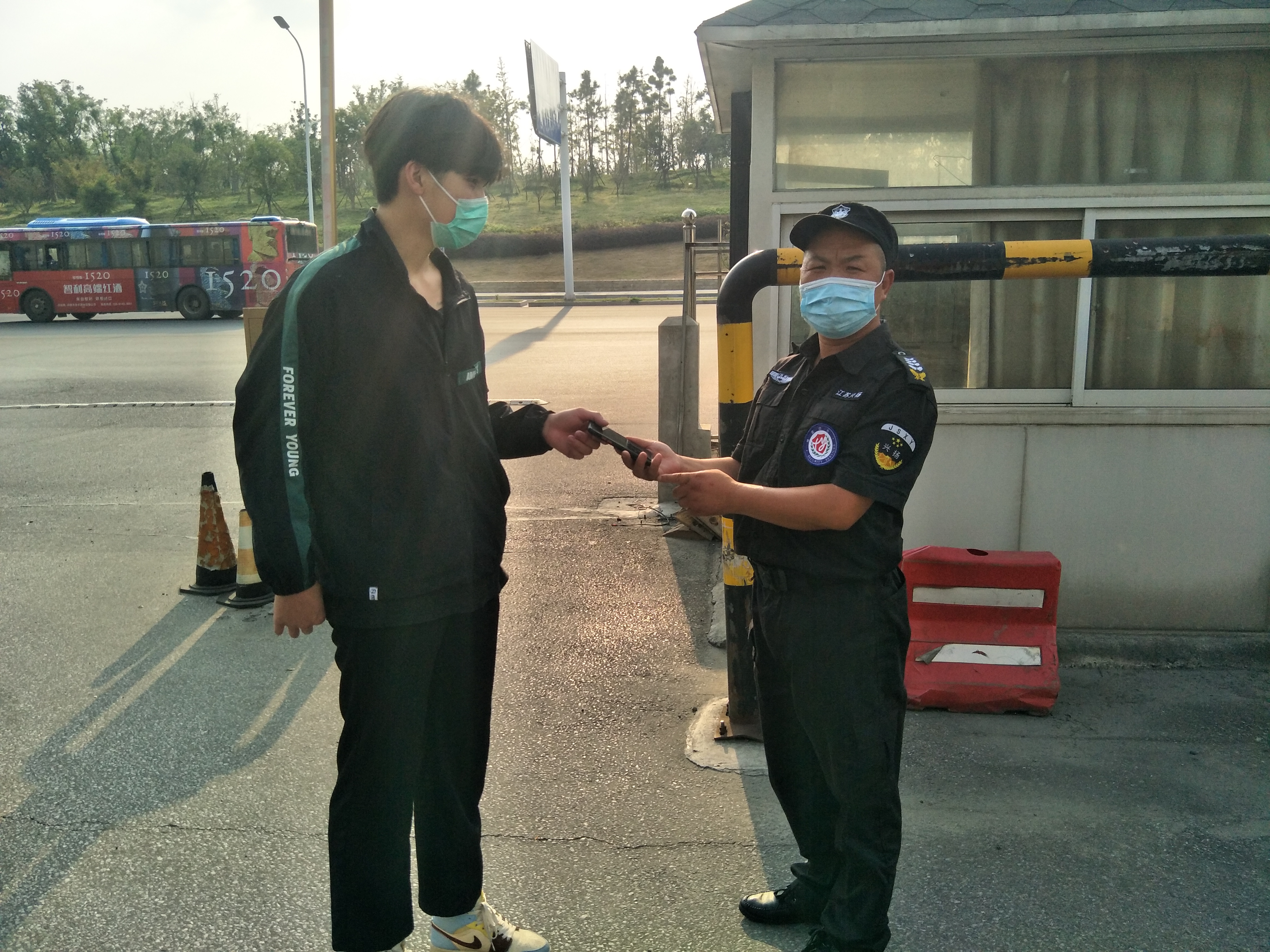 揚(yáng)州站工作人員陪同小阮先生來到揚(yáng)州站下客區(qū)管理亭,核實(shí)身份信息,在確定無誤后將手機(jī)予以交還,小伙子想當(dāng)面感謝駕駛員師傅,沒想到駕駛員師傅將手機(jī)送到管理亭,交由保安師傅后已經(jīng)離開了,小伙子為了不留遺憾,要求跟我們保安師傅合影,向我們那位拾金不昧做好事不留名的駕駛員師傅表示感謝。