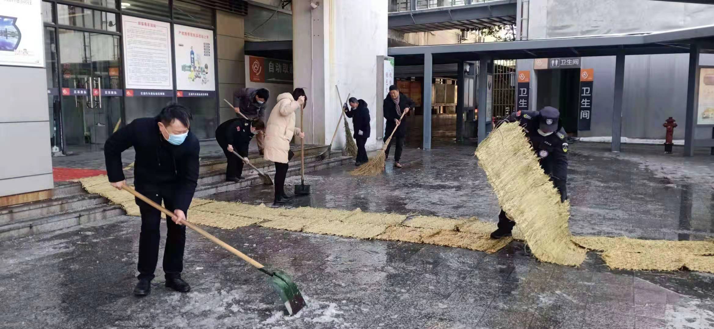大雪過(guò)后,融雪除冰是旅客出行的保障,車站連夜安排職工、物業(yè)根據(jù)雪情實(shí)施作業(yè),確保道路通暢。
