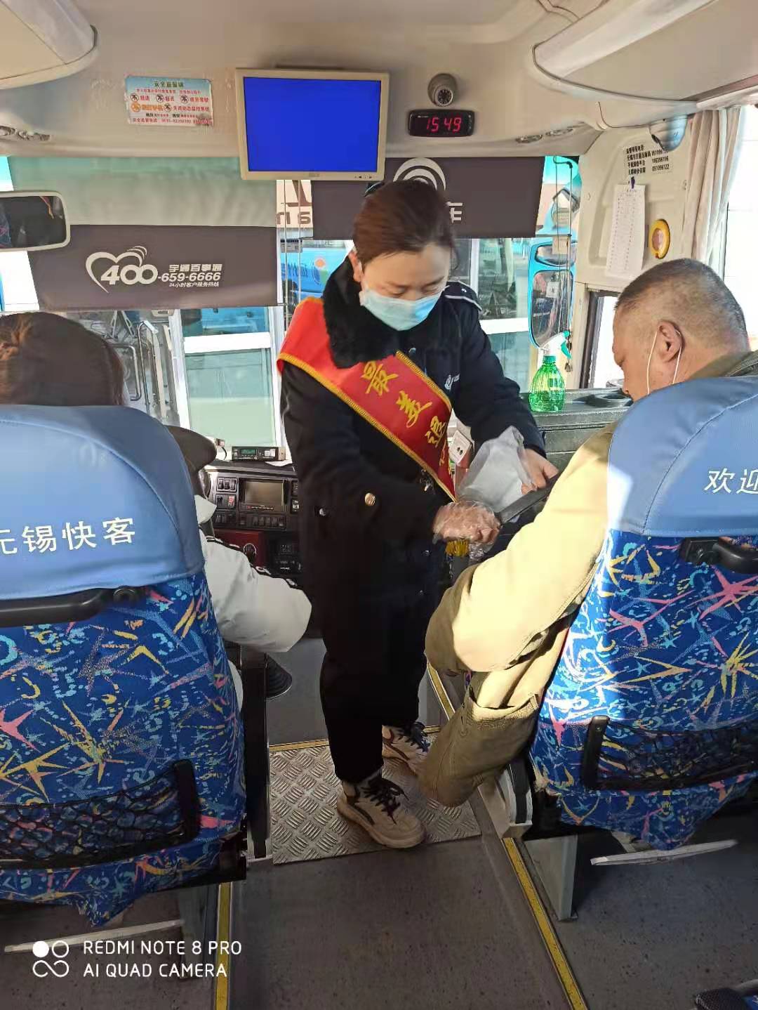 “您乘坐的車輛已經消毒過,請放心上車…,老人家,你倆戴的口罩破了,我這有新的,請你換上…,請大家保持一米距離檢票,時間充裕,不會耽誤大家行程…,請大家檢票上車后,系帶好安全帶,口罩不能摘…”。一連串的溫馨提醒和戴著口罩仍在眉宇間“跳躍”著的笑容,讓旅客感到十分暖心。口不停、手不停每天數百遍地完美重復為旅客服務的場景,正是她幾年軍營生活、過硬作風養(yǎng)成的積淀,更是她退役轉崗后,愛崗敬業(yè)的生動寫照。前幾日的一天下午,有位蘇州的旅客一旁候車時,看到當班吳琳檢票發(fā)車時嫻熟的連貫動作和麻利果斷指揮發(fā)車標準旗語手勢時,情不自禁地掏出手機,“啪差…”拍個不停,嘴里還自言自語道:“這個畫面好,這個畫面好…”。