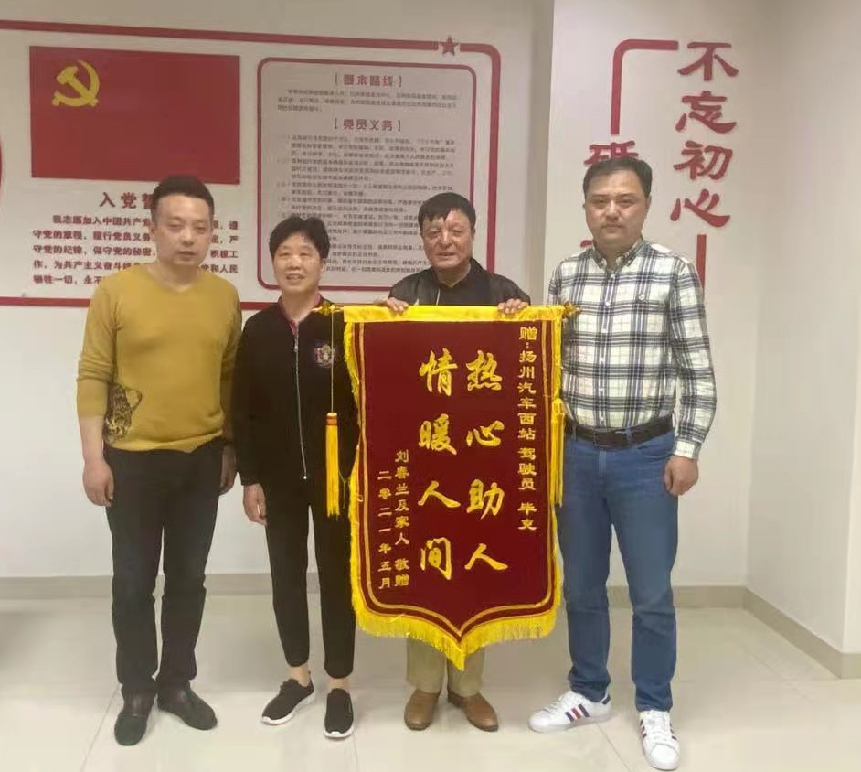 5月6日下午,張先生和劉女士風(fēng)塵仆仆的來到揚(yáng)汽定制公司,為表達(dá)對(duì)高郵健康定制線畢克師傅的謝意,老人們手捧錦旗以表感謝之情。