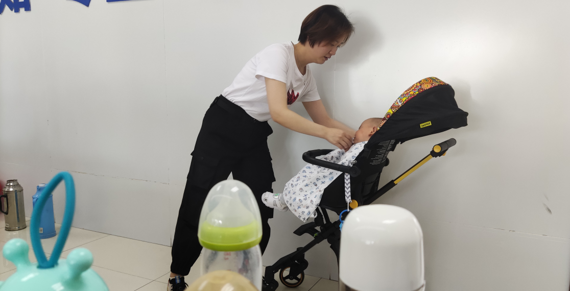 此時,一陣嬰兒的哭泣聲在人群中顯得格外特別,一位推著嬰兒車的年輕媽媽滿臉神情焦急,四處張望著。招生大廳內(nèi)工作人員朱玲看到后,第一時間走到她的身邊詢問情況,原來這位母親今天是來參加培訓(xùn)的,本來一位朋友說好前來陪同幫忙照看孩子,眼看培訓(xùn)時間就要到了,她的朋友還沒有來,一時急的沒有辦法。朱玲了解情況后,主動向孩子母親提出:“目前還在疫情防控期間,培訓(xùn)學(xué)員較多,帶孩子參加不太合適,放在我們這邊幫忙照看是比較妥善的辦法,我愿意幫忙照看孩子,您就安心參加培訓(xùn)吧。”