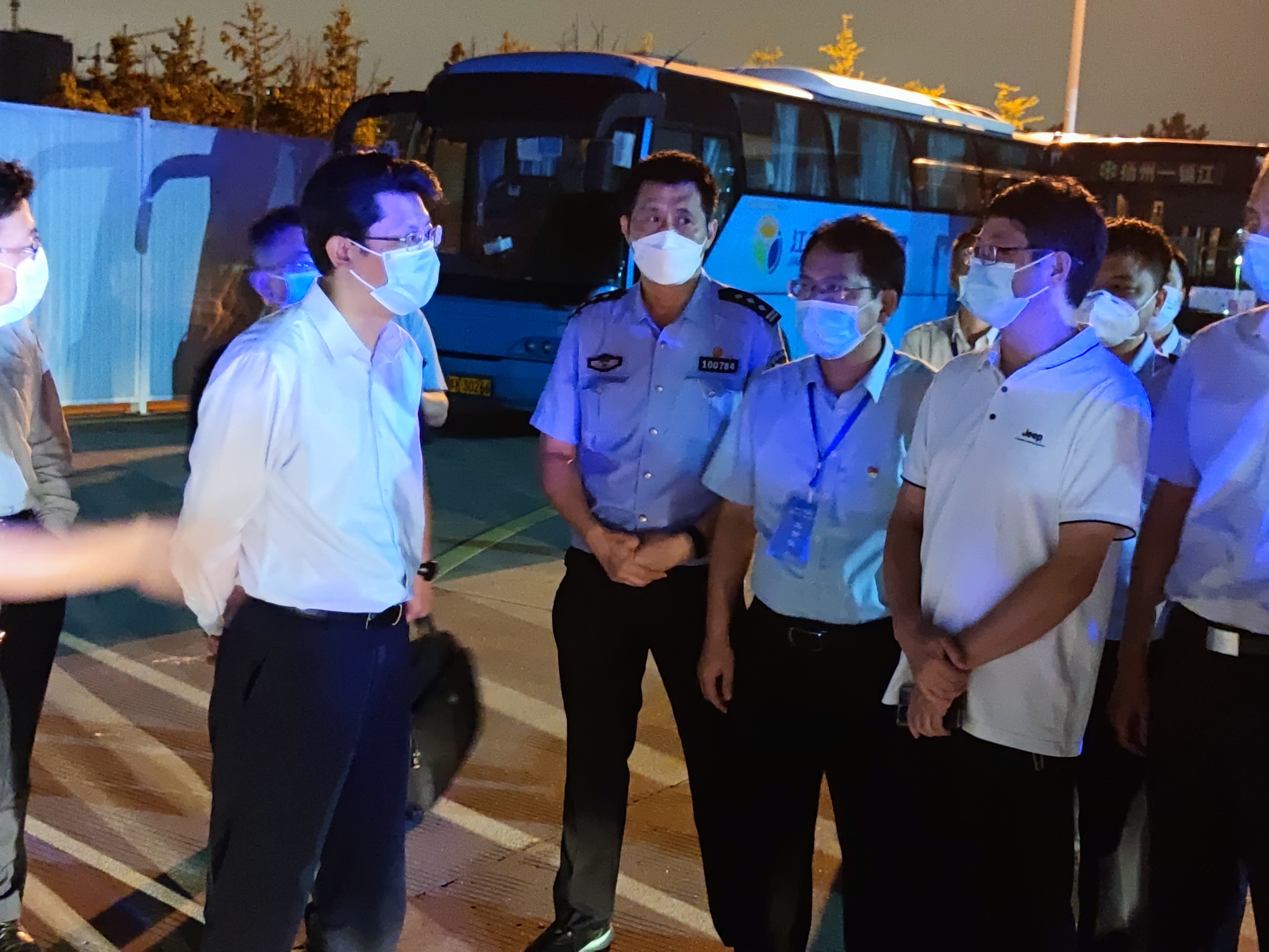 8月15日23時15分,揚州市委副書記、代理市長王進健來到揚汽集團修理廠,慰問防疫交通轉(zhuǎn)運專班工作人員。交通產(chǎn)業(yè)集團黨委副書記、副董事長、總經(jīng)理方璇智,副總經(jīng)理、揚汽集團黨委書記、董事長龔宇峰全程陪同。