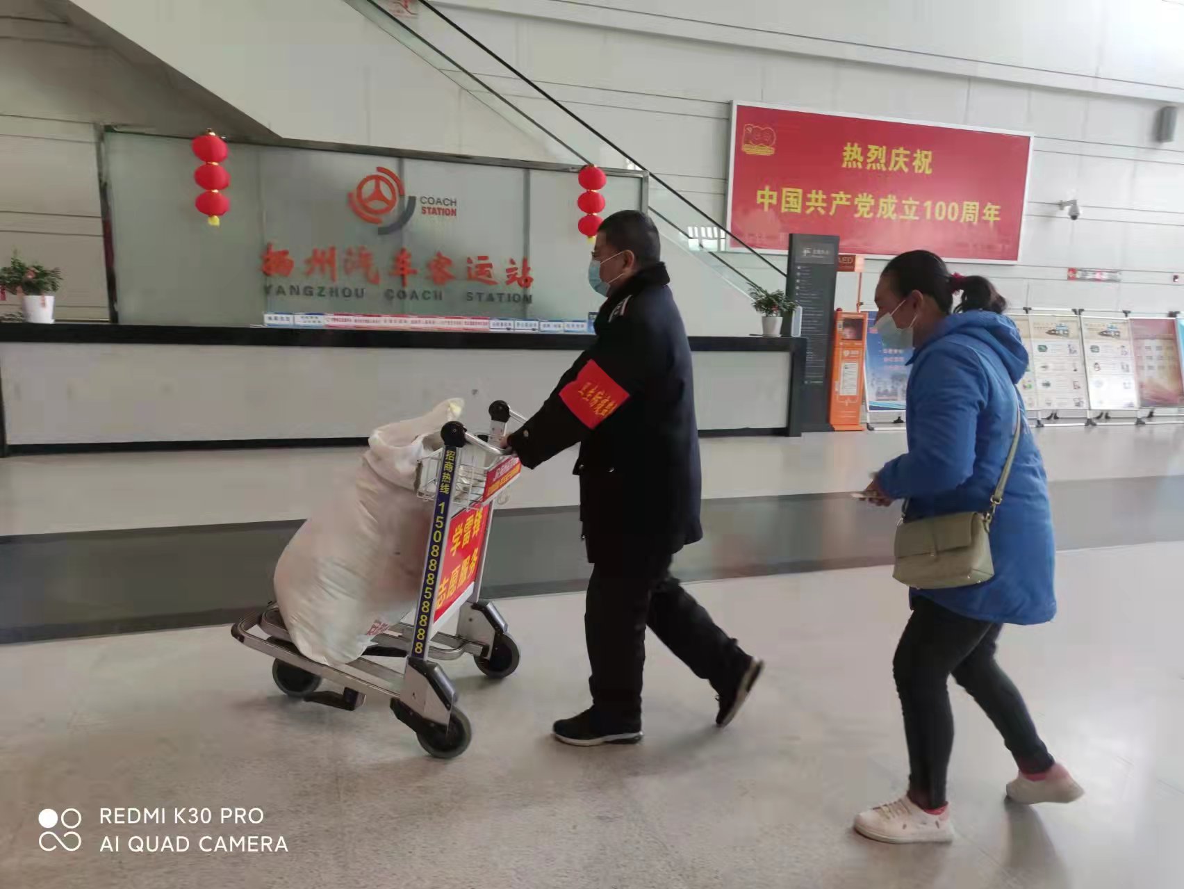3月4日中午12點(diǎn)半左右,一名中年女同志拖著一個(gè)大大的尼龍袋子,一瘸一拐、極其艱難的進(jìn)了揚(yáng)州汽車(chē)站售票大廳門(mén)口。