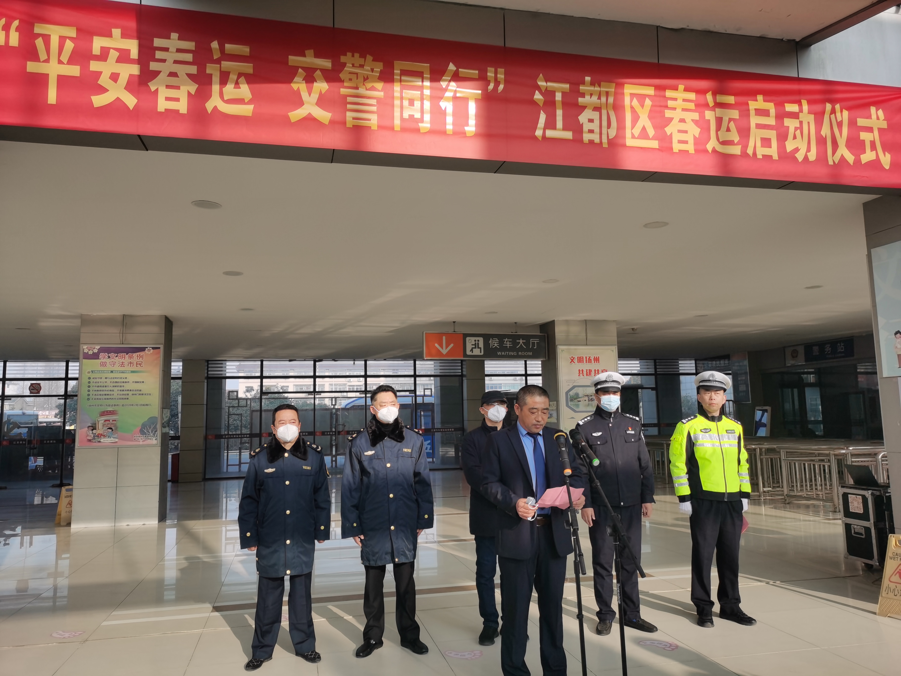 1月7日,2023年“平安春運(yùn) 交警同行”啟動(dòng)儀式在江都汽車客運(yùn)站售票大廳內(nèi)舉行。江都區(qū)公安局副局長(zhǎng)、交警大隊(duì)大隊(duì)長(zhǎng)宦新宇,江都區(qū)交警大隊(duì)車管所所長(zhǎng)滕斌,揚(yáng)汽集團(tuán)相關(guān)負(fù)責(zé)人參加活動(dòng)。
