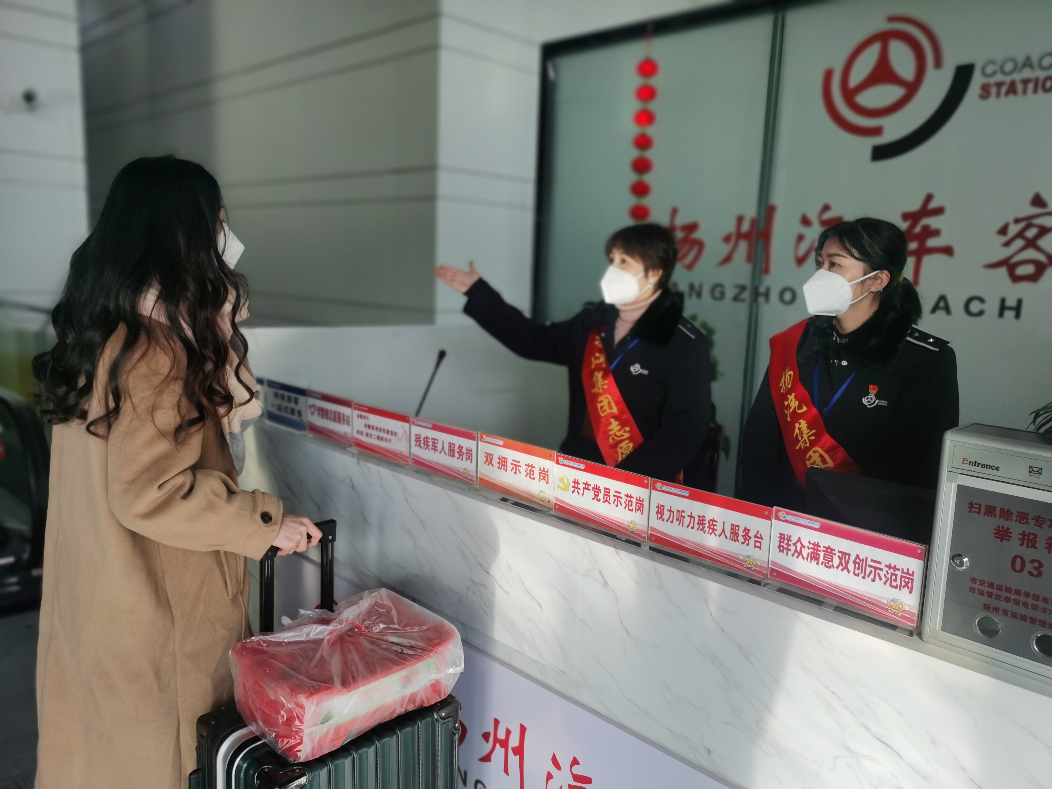 一杯杯溫暖的姜茶,一份份應急的藥品,一句句溫馨的問候,讓沿途旅客倍感溫暖。在車站服務(wù)臺,站務(wù)員們耐心地向旅客提供乘車引導、維持秩序、搬運行李等服務(wù),用體貼、周到的服務(wù)幫助每一位旅客。“我發(fā)車時間快到了,怎么坐車?”一位旅客正在用一口不怎么流利的普通話焦急地詢問著,服務(wù)班工作人員立刻上前仔細聆聽,看見旅客喘著粗氣,手里都是大包小包的行李,便推來了雷鋒車,邊放行李邊詢問旅客發(fā)車時間,工作人員在看了旅客票后發(fā)現(xiàn)離發(fā)車還有一個小時,是旅客自己看錯了時間,便安慰旅客不要著急,待會我把你送去檢票口。大姐連聲說著謝謝,夸贊我們站務(wù)員的服務(wù)真好。工作人員說:“像這樣的小事每天都在發(fā)生,每次聽旅客的一聲“謝謝”我就滿足了。”