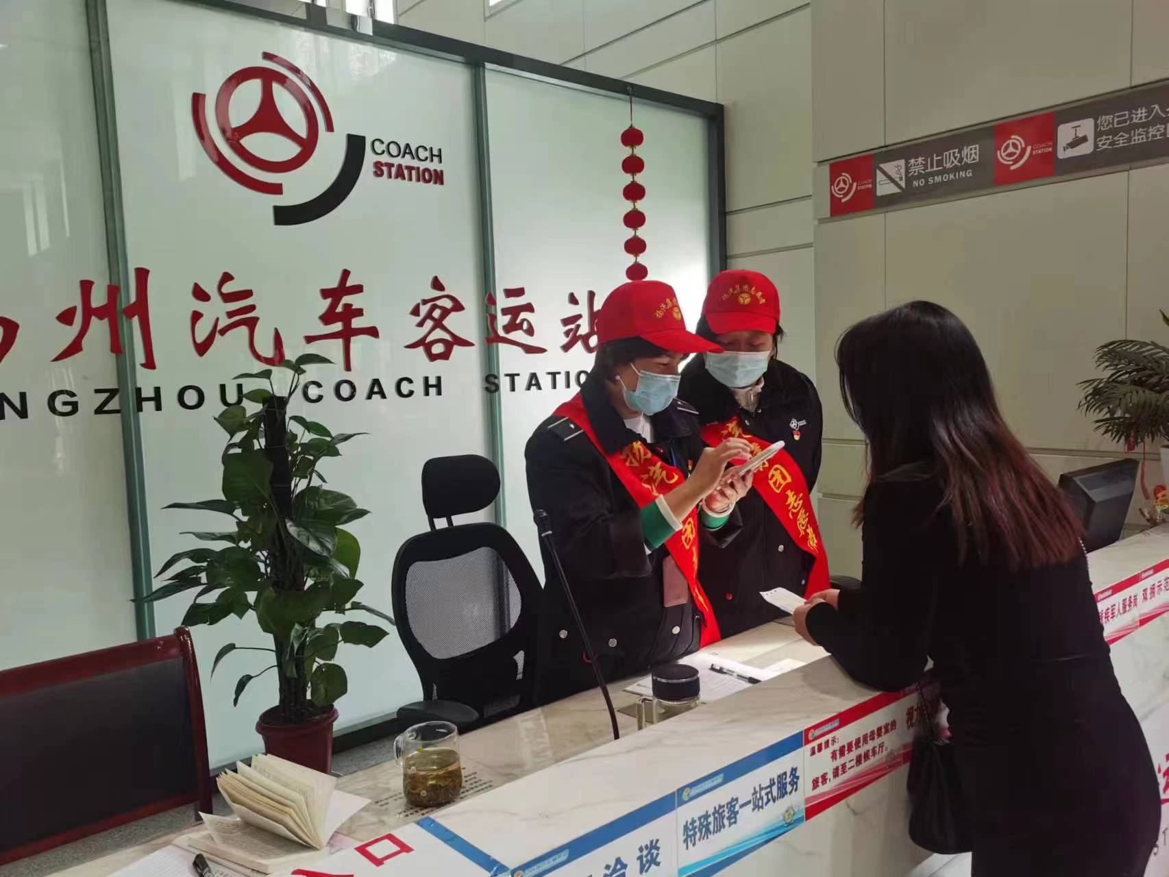 在江都汽車站,一位老奶奶就等在了車站門口拖著一個(gè)大大的尼龍袋子,服務(wù)臺(tái)的志愿者見狀趕緊上前詢問,原來老年人有急事去往南京,而且患有高血壓,一著急就頭暈,也不知道怎么購(gòu)票,感覺早早來總不會(huì)錯(cuò),但看著現(xiàn)在車站這么多窗口和機(jī)器,一下子不知道應(yīng)該怎么操作。工作人員一邊安慰老人,一邊幫老人在窗口買好了票,并幫助老人運(yùn)送行李,和發(fā)車員妥善安排好了老人的上車問題,才放心地回到自己的工作崗位。